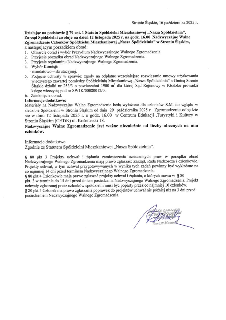 Witamy serdecznie na stronie Spółdzielni Mieszkaniowej „Nasza Spółdzielnia” w Stroniu Śląskim. Zachęcamy do zapoznania się z publikowanymi materiałami.