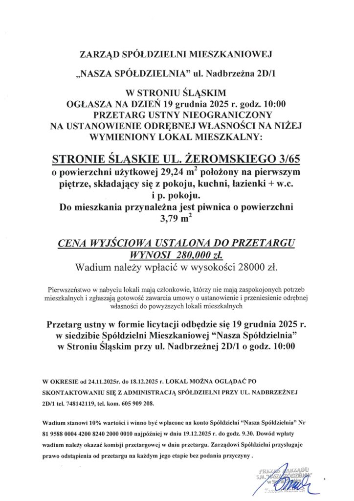 Witamy serdecznie na stronie Spółdzielni Mieszkaniowej „Nasza Spółdzielnia” w Stroniu Śląskim. Zachęcamy do zapoznania się z publikowanymi materiałami.